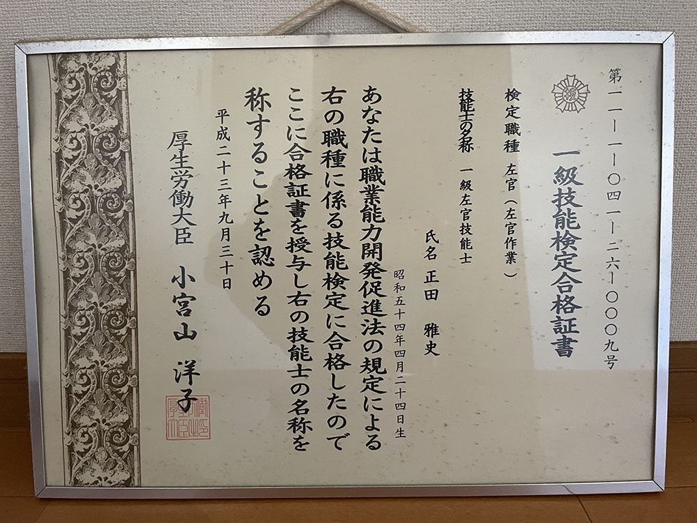| 保有資格 | 一級左官技能士