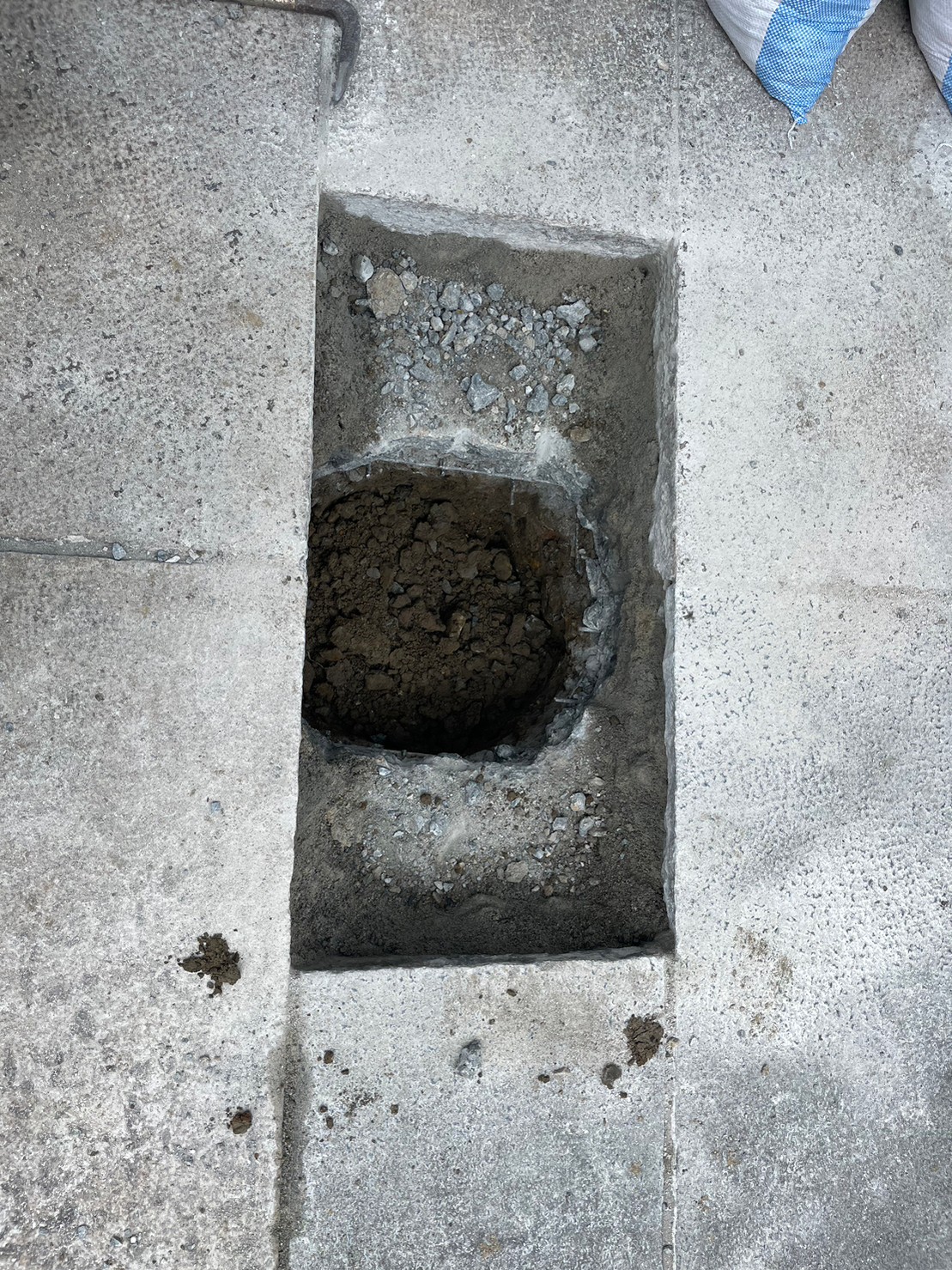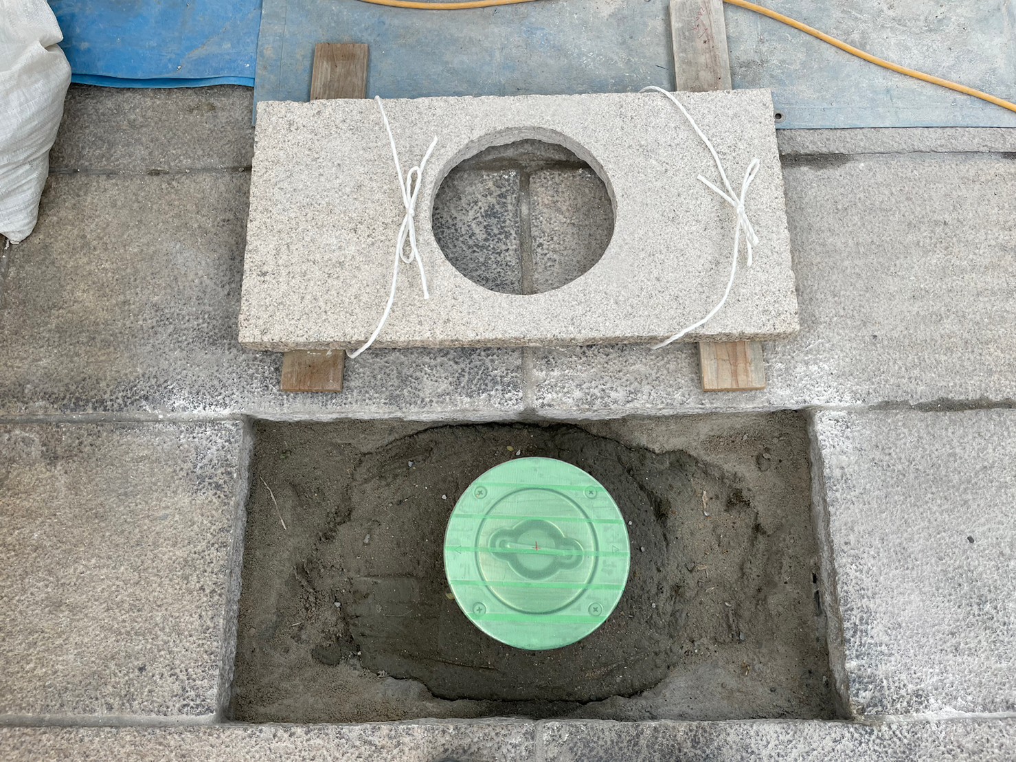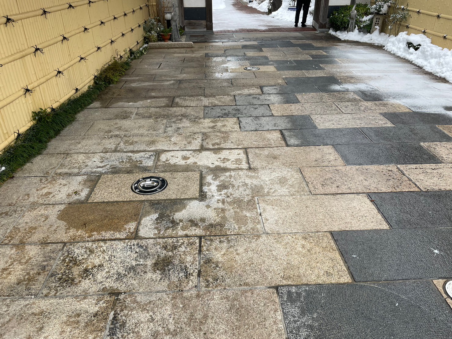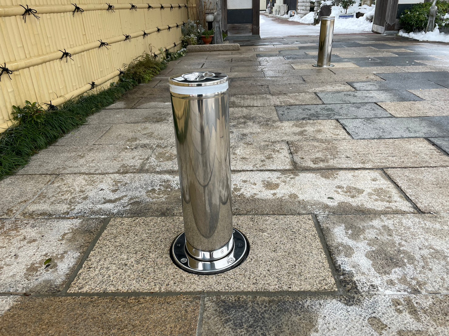 ガタガタになってしまっていたインターロッキングをめくり、コンクリート土間にしてスムーズにお車の出し入れが出来るようになりました。 玄関には石をくり抜き、車止め(スペースガード160パイ)を取り付け致しました。