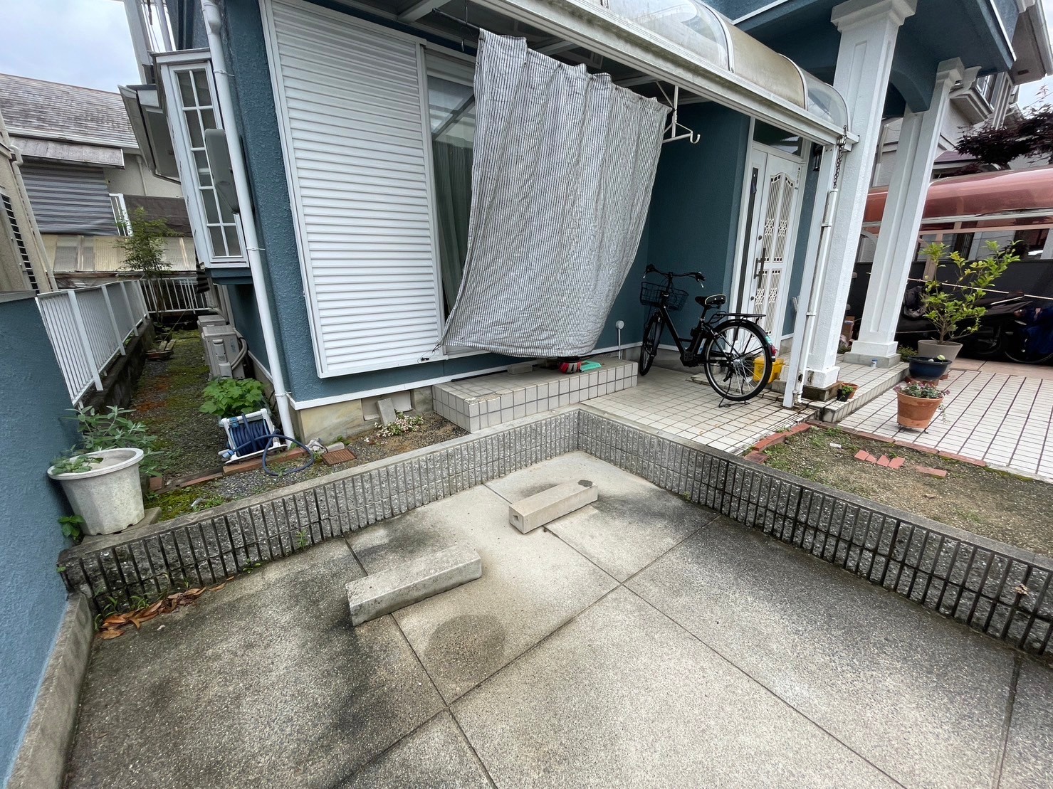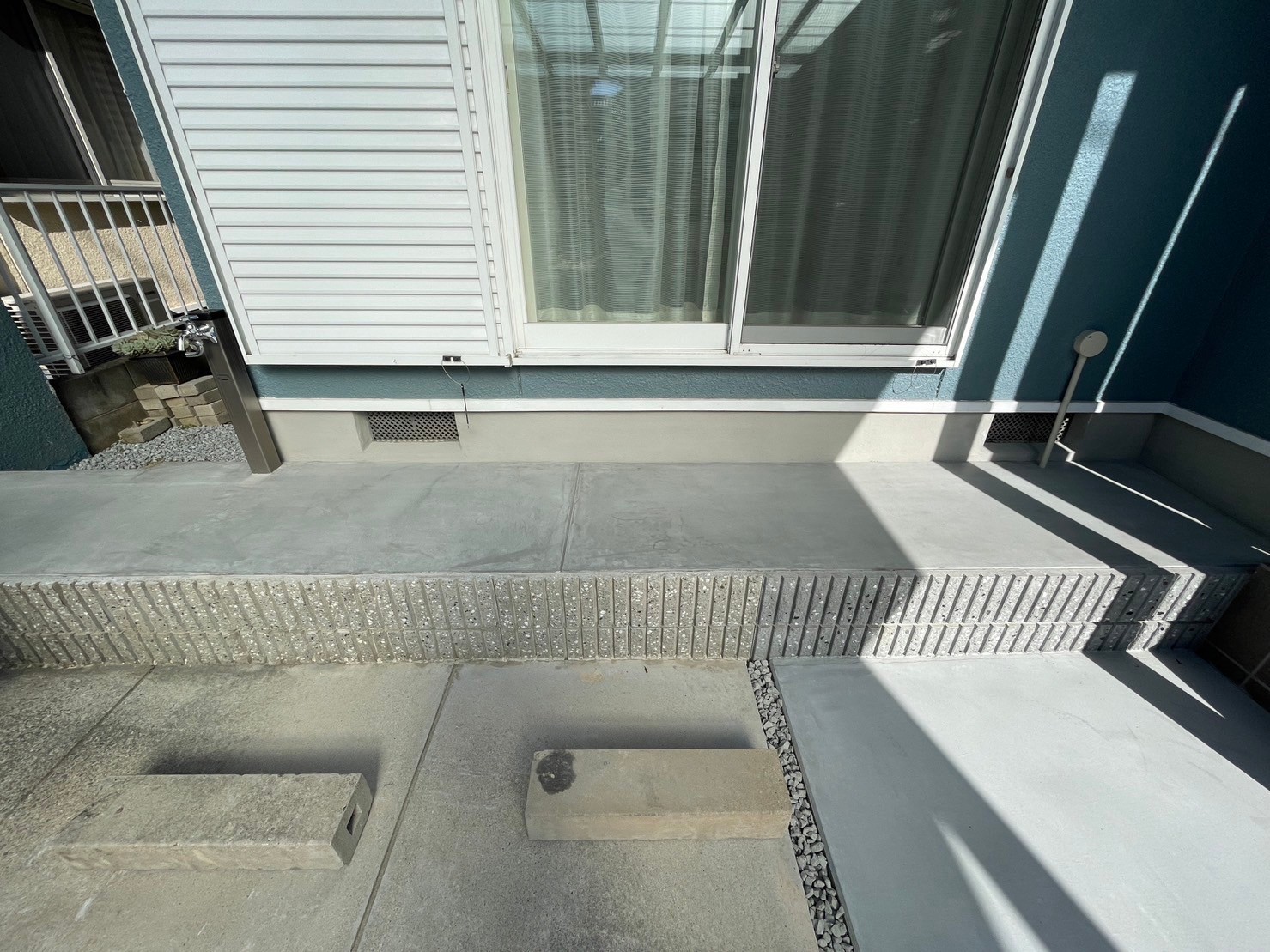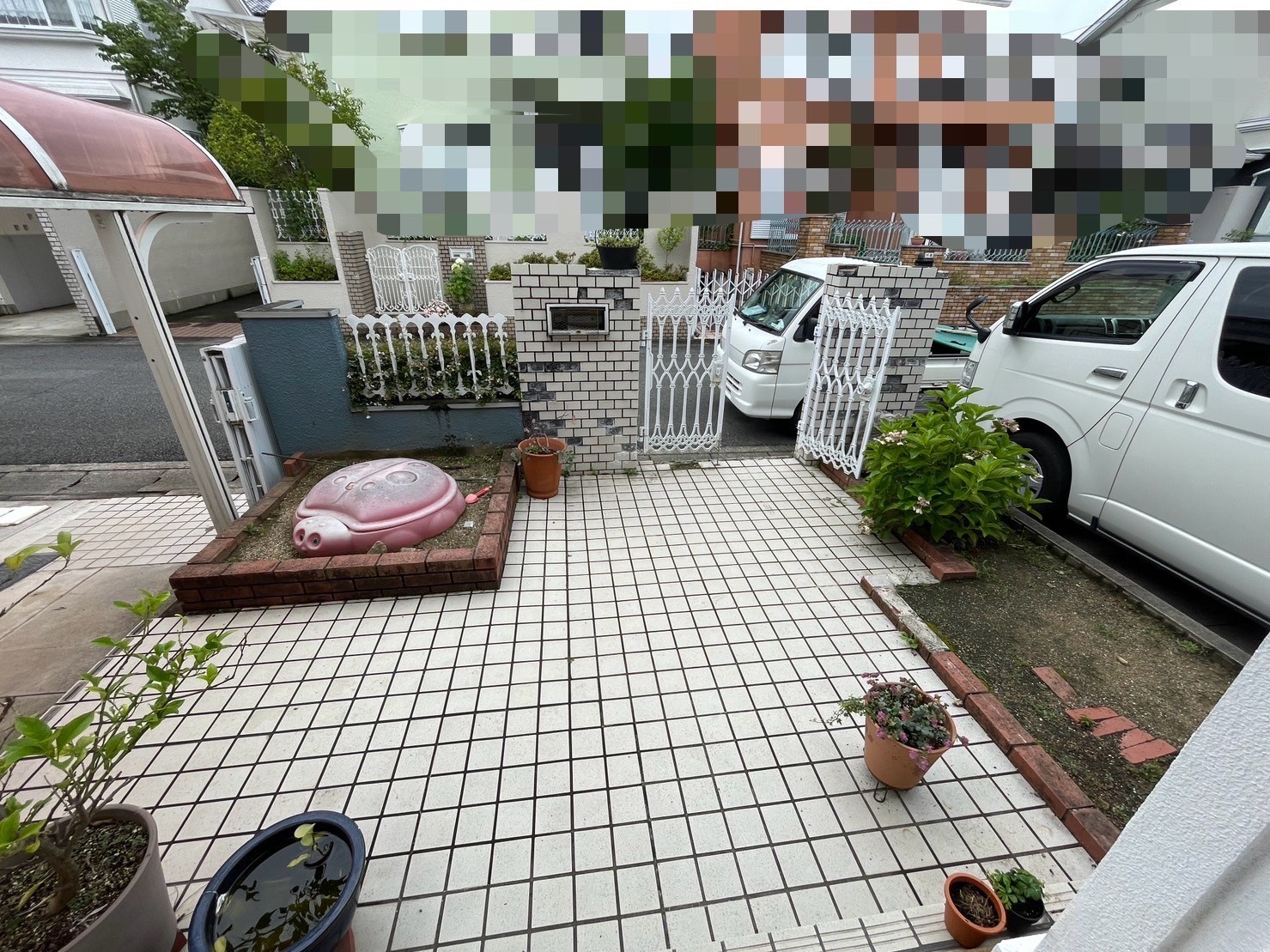 使い勝手がイマイチ良くなかった駐車スペースとアプローチ オープン外構にしてお車、自転車、バイクをスムーズに出し入れできるようになりました。 アプローチはシンプルにコンクリートで、スリットには人工芝でアクセントをつけました。