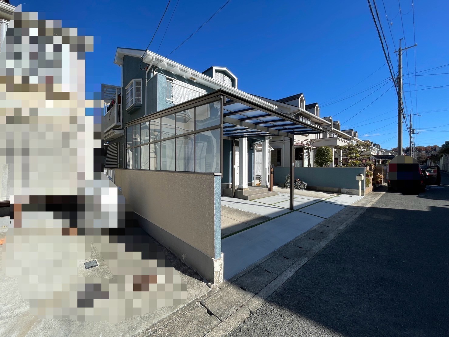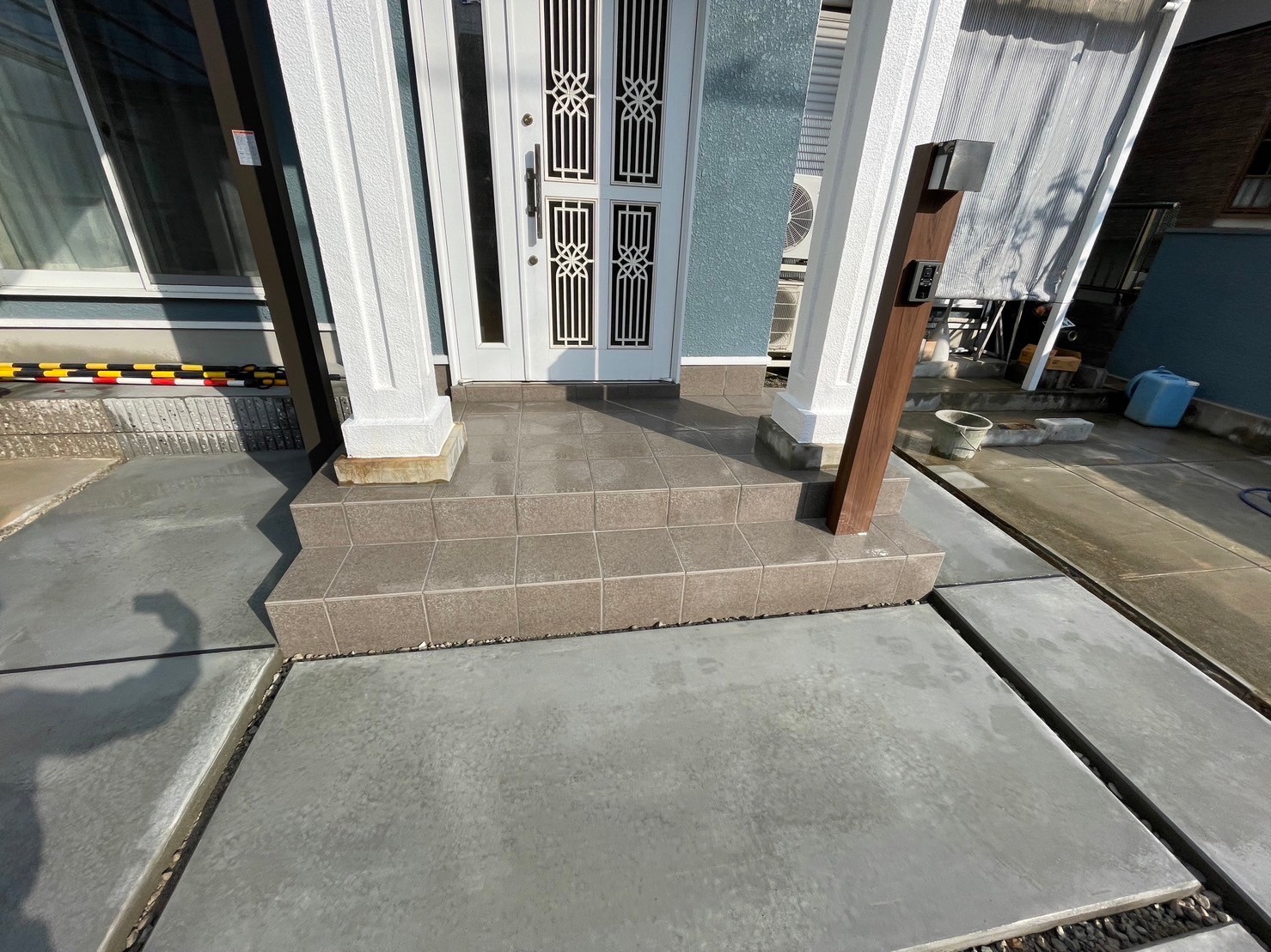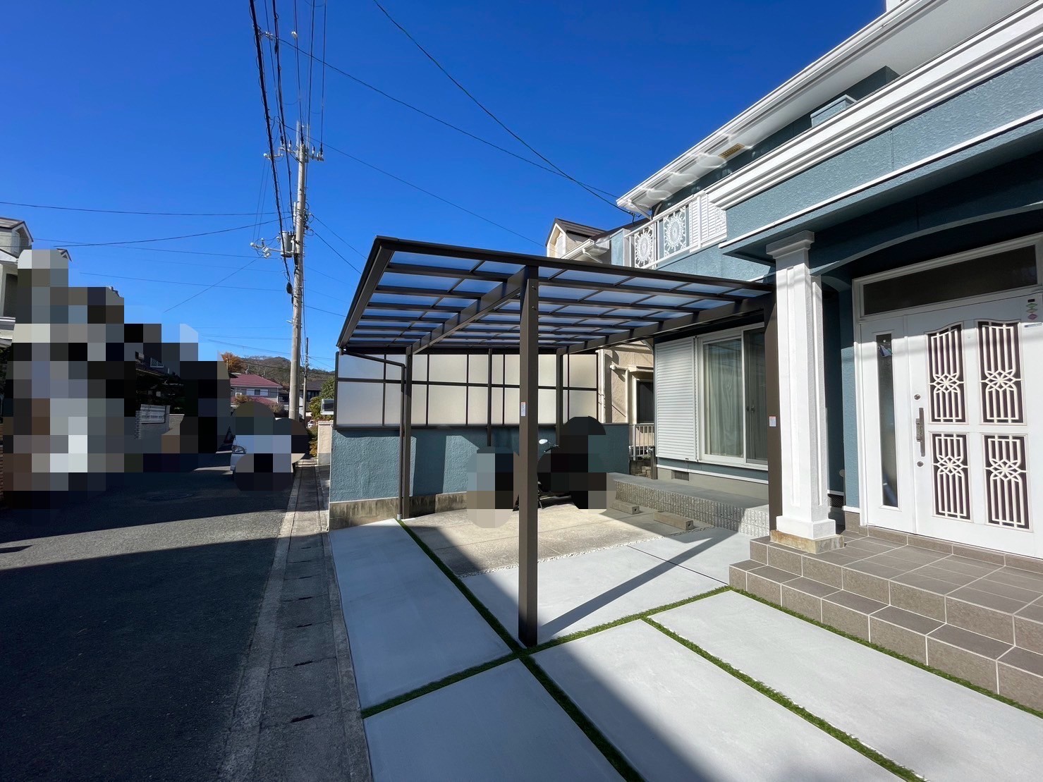 使い勝手がイマイチ良くなかった駐車スペースとアプローチ オープン外構にしてお車、自転車、バイクをスムーズに出し入れできるようになりました。 アプローチはシンプルにコンクリートで、スリットには人工芝でアクセントをつけました。