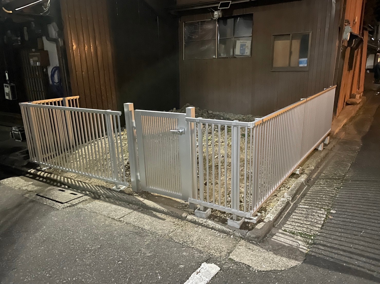 空き地からの侵入対策としてフェンスで囲いを作りました。 <使用商品> 三協アルミ レジリアTK1型フェンス H1,000 レジリア門扉T1型