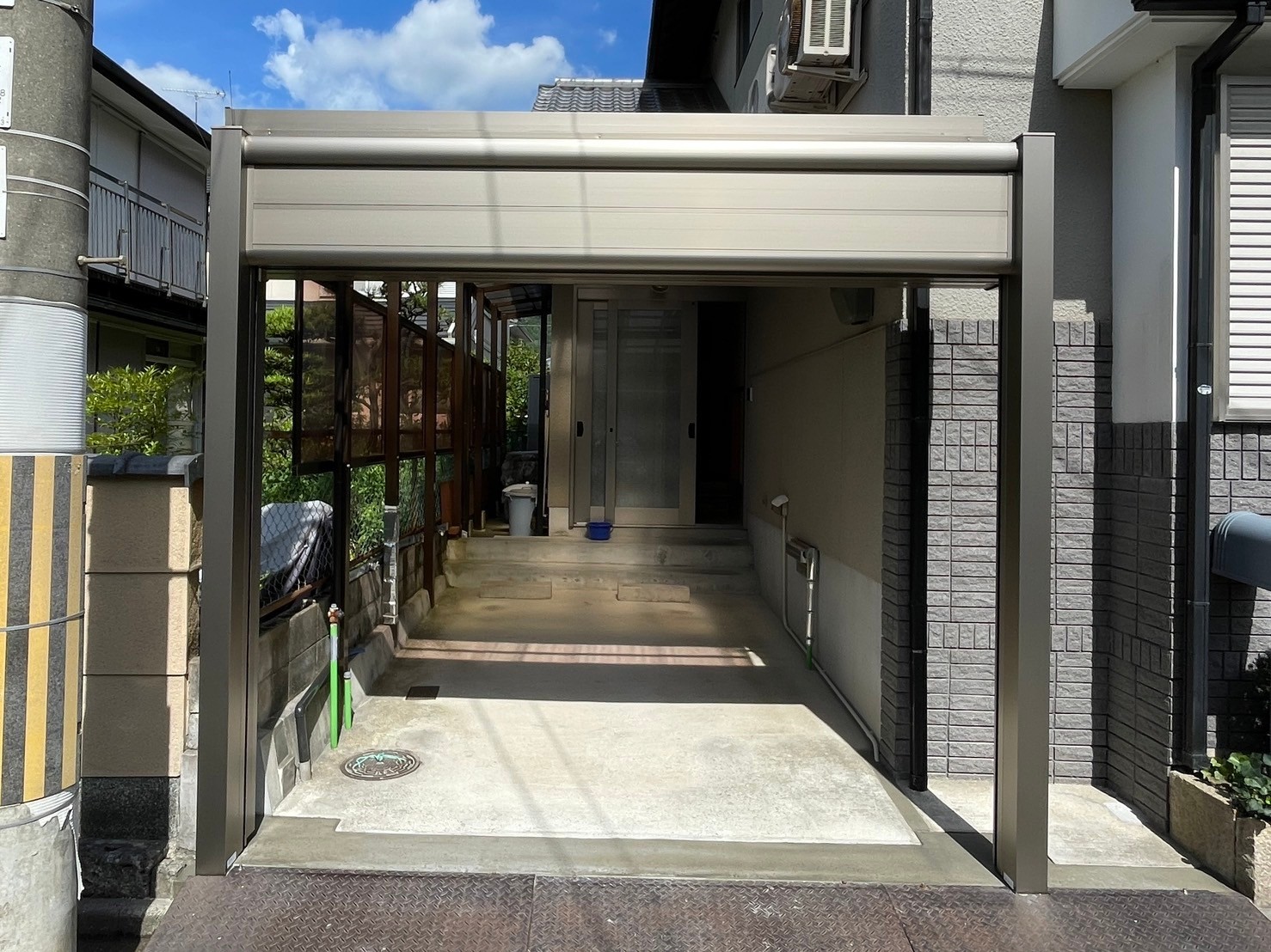 引戸のゲートから電動シャッターゲートへ 毎日の事なので、電動シャッターをお選びになられました。電動なので毎日の暮らしやすさが激変。 リモコン操作でお車からボタンを押すだけ、雨の日も楽々です。