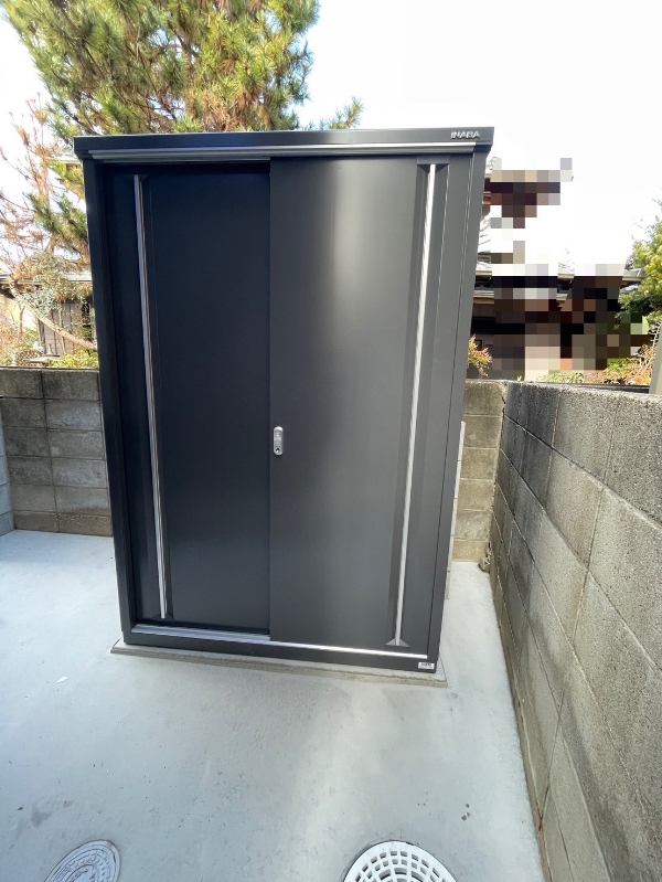物置はイナバ物置のシンプリー。建物との調和のとれたカラーが選べます。