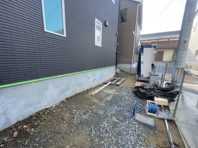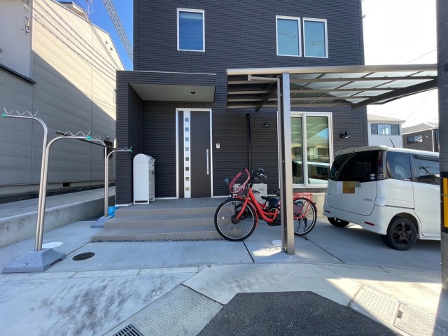 外周は防草シートと砕石敷き、とちの形状を最大限に活かしたコンクリート土間のオープン外構に、 シンプルに使いやすさバツグンに仕上がりました。